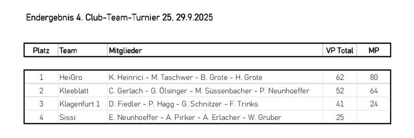 Ergebnis 4. Club-Team-Turnier 25, 29.9.2